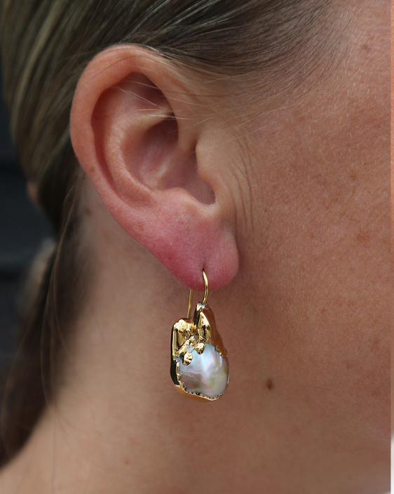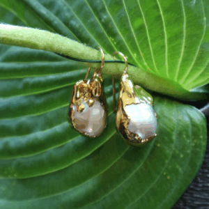 Dit is een witte baroque parel gedeeltelijk bedekt met goud 24KT