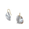 Dit is een set met grijs/witte zoetwaterparels afgewerkt met gele kristal en een vergulde haak.