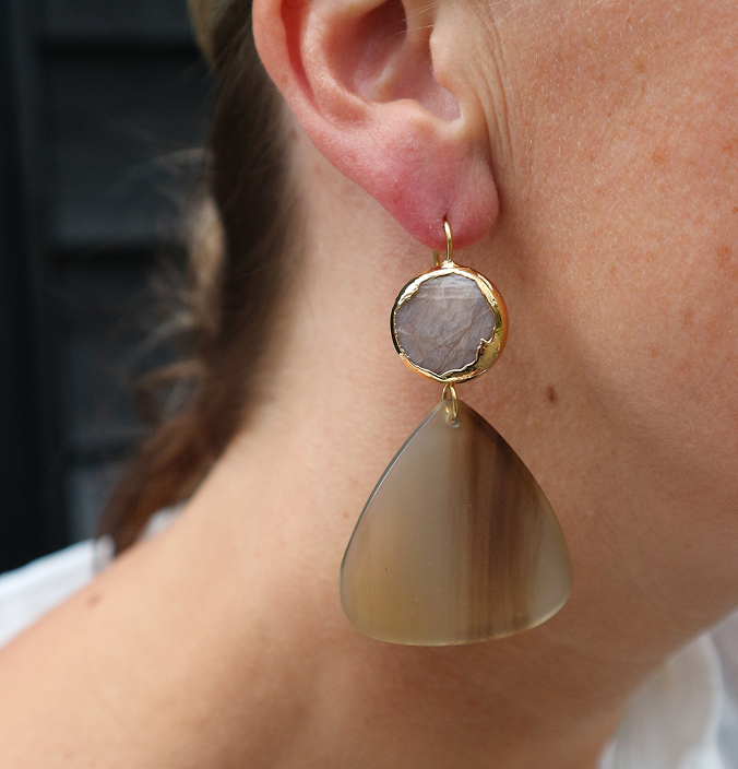 Dit is een hoorschijf driehoek met een vergulde maansteen 24KT goud
