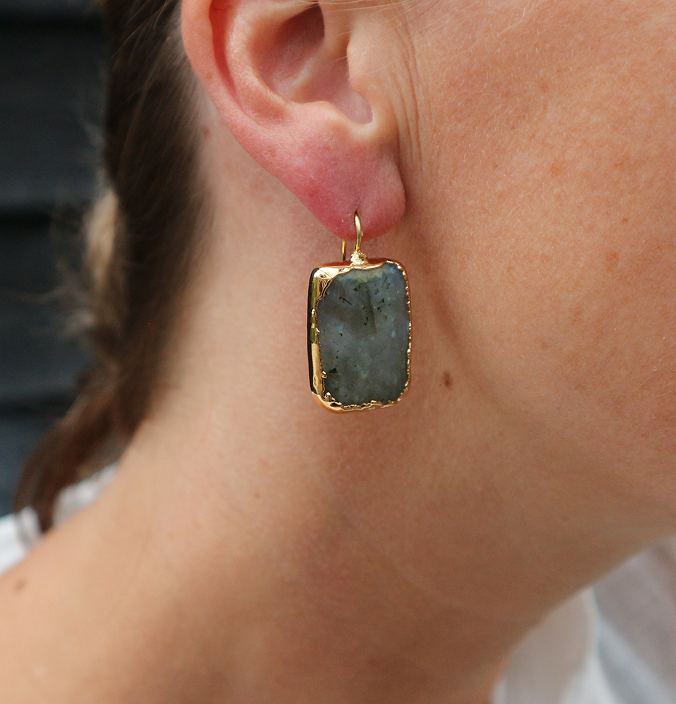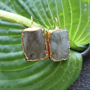 Dit is een vierkant geslepen labradoriet steen bedekt met goud 24KT