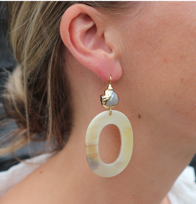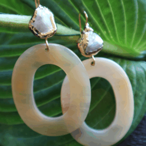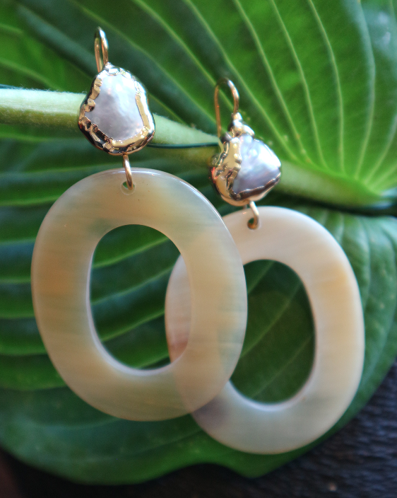 Dit is een set van hoorn schelpen ovaal met een vergulde zoetwaterparel 24KT goud